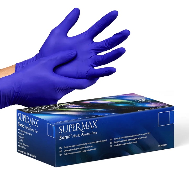 A luva Supermax Sonic é a escolha número 1 dos médicos americanos, pois oferece ultraconforto e sensibilidade. Sem pó bioabsorvível; Micro texturizada na ponta dos dedos; Qualidade que garante menos descartes e economia; Alta resistência durante o uso; Cor: Azul cobalto. Indicações: hospitais, clínicas médicas, odontológicas, veterinárias, laboratórios, estúdios de tatuagem, clínicas de estética, podologia, salões de beleza, indústrias e segmento alimentício.